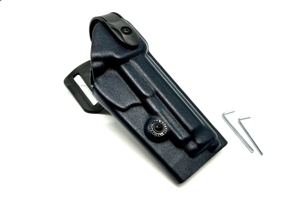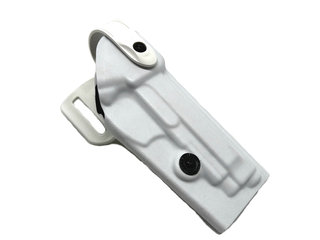 Fondina con sistema di sicurezza di secondo grado. Fondina termoformata. Foderata internamente. Vite di ritenzione sulla canna. Prodotta per i seguenti modelli: beretta 92, 98, 98A1, 90two, beretta brigadier, px4 storm, beretta apx, beretta apx centurion, caracal c, caracal f, colt 1911, colt pyton 4 pollici, cz sp01 shadow, glock 17, 18, 19, 23, 25, 267, 27, 28, 32, 38, hk usp, sig sauer p 220, 226, pro 2022, taurus pt92, taurus g3, walther ppq, p99q, p99, piexon jpx. Disponibile in colore nero, blu, bianco solo su ordinazione. Le asole del passante sono per cinturoni alti fino a 5,5 cm. Prodotto in Italia. Peso lordo: 345 grammi.