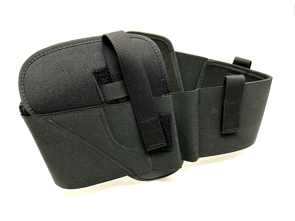 Fascia elastica regolabile tramite strip con fondina, doppio porta caricatore, tasca con cerniera di larghezza 22,5 cm, porta manette. Disponibile le seguenti misure: I ( per girovita utile da 86 cm a 106 cm ), II ( per girovita utile da 104 cm a 128 cm ). Dopo la regolazione della misura c'è un ulteriore laccetto regolabile, con fibbia a scatto. Larghezza fascia 10 cm. Disponibile con fondina elasticizzata per pistola large auto. Peso lordo: 280 grammi. Prodotto in Italia.
