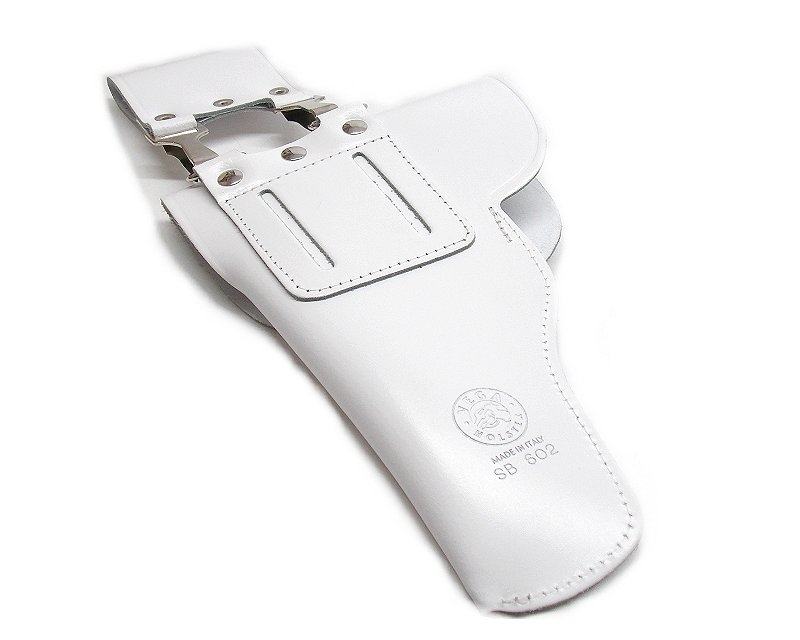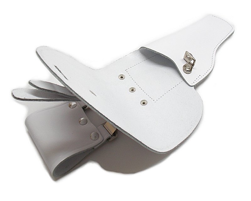 Fondina con pattina. Doppio moschettone e passante. Colore disponibile: bianco. Peso lordo: 275 grammi. Prodotto in Italia.