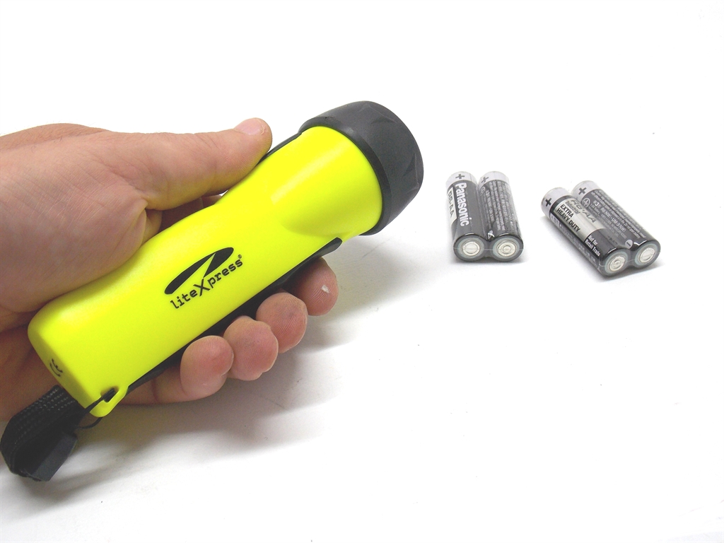 Torcia subacquea a 4 led e 1 lampada xenon, impugnatura ergonomica e antiscivolo, lacciolo per facilitare la presa. Dotata di 4 batterie 1,5v aa. Durata dei led 100 ore. Utilizzabile fino a 30 metri di profondità. Lunghezza della torcia cm 15. Peso lordo: 195 grammi.