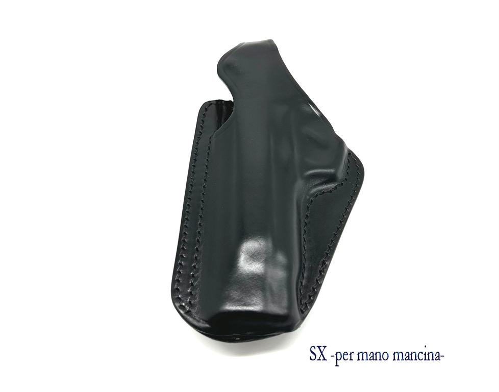 Fondina in cuoio sformato. Porta a cintura tramite passante in polimero apribile e regolabile. Sgancio rapido con lamella di rinforzo interna. Forma compatta per un miglior confort ed occultamento. Colore nero. Disponibile per le seguenti armi: Beretta 92, 98, glock 17, 19, 22, 23, 29, 30, 31, 37, walther p99, colt 1911, sig sauer pro2022. Peso lordo: 175 grammi. Prodotto in Italia.