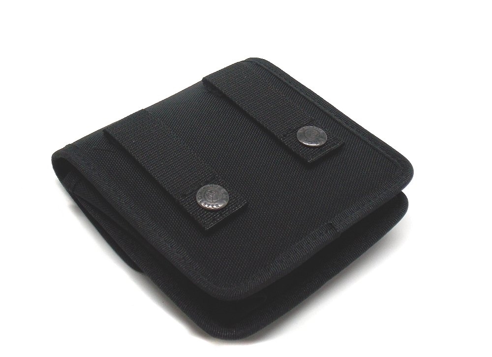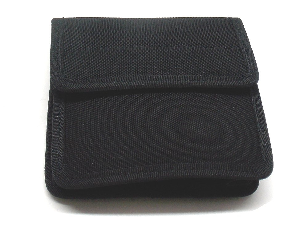 Borsetto imbottito in cordura con tre tasche interne e con chiusura a strip. Colori disponibili: nero, blu. Dimensioni: 13 ( altezza) x12x3,5 cm. Con due passanti per cinturoni alti 5 cm. Peso lordo: 95 grammi. Prodotto in Italia.