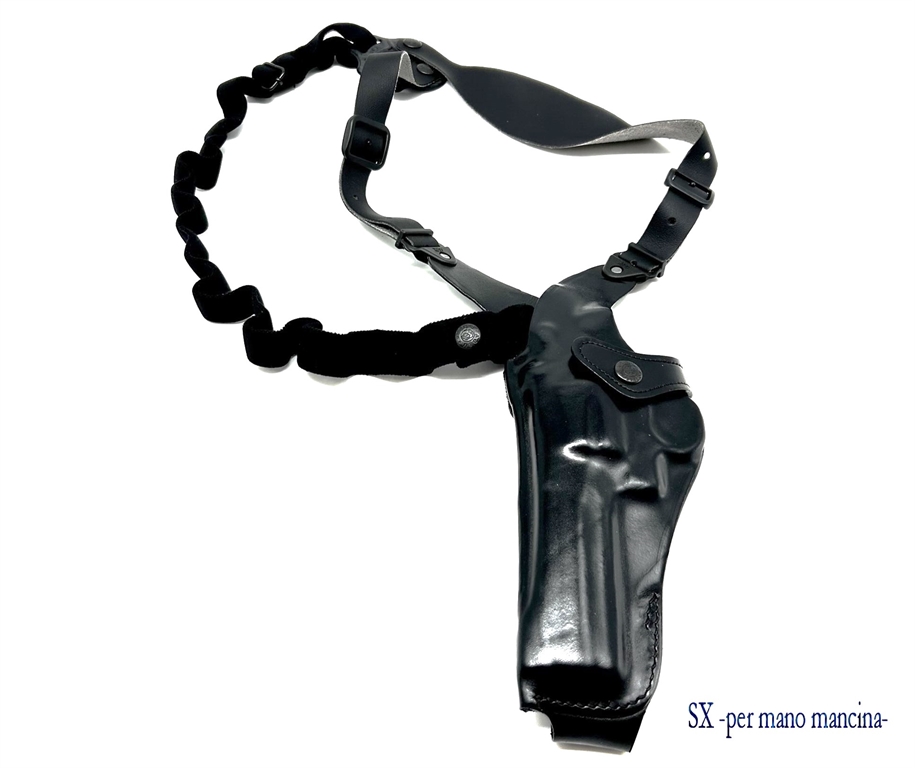 Fondina ascellare verticale in cuoio sformato con sgancio rapido. Disponibile nei colori nero o marrone. Prodotta per Beretta 92, 98, 81, 82, 84, 85, 90 two, 98 A1, px4 storm, 8000, 9000, colt 1911, glock 17, 19, 20, 21, 22, 23, 25, 26, 27, 28, 29, 30, 36, 31, 32, 36, 37, hk usp, walther p99, ppq, p99q, e revolver 2,5, 4 e 6 pollici. Peso lordo: 255 grammi. Prodotto in Italia.