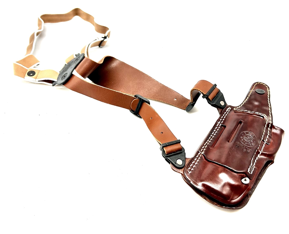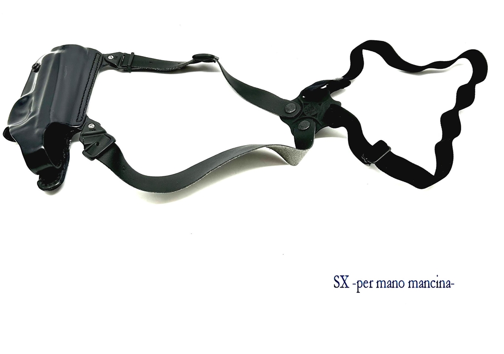 Fondina in cuoio ascellare o da cintura con sgancio rapido. 4 usi: ascellare orizzontale, a cintura sul fianco destro, cross draw e retroschiena. Prodotta per: beretta 92, 98, 84, 9000, beretta apx, px4 storm, 90 two, 98 A1, colt 1911, caracal c, caracal f, glock 17, 19, 20, 22, 23, 26, 27, 30,42 revolver da 2 pollici fino a 4 pollici, sig sauer p226, 228, 229, 230, 232, 2340, pro 2022, hk usp, spriengfield xd, walther p99, ppk, pps. In colore marrone o nero. Prodotto in Italia. Peso lordo: 270 grammi.