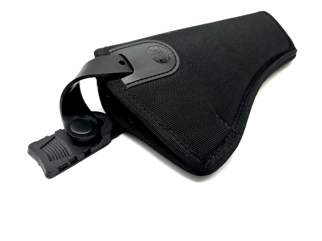 Fondina da cintura in cordura nera, sgancio rapido regolabile rinforzato nella parte di pressione, passante in poliuretano. Disponibile in colore nero. Prodotto per i seguenti modelli: beretta 90two, 98A1, px4 storm, 92, 98, 84, 8000, 9000, beretta apx, bersa, caracal c, f, revolver da 2,5 a 6 pollici, glock 17, 19, 20, 21, 22, 23, 25, 26, 27, 28, 29, 30, 31, 32, 36, 37, 38, sig sauer p220, 225, 226, pro 2022, taurus g 3, walther ppq, p99, p99q. Peso lordo: 135 grammi. Prodotto made in Italy.