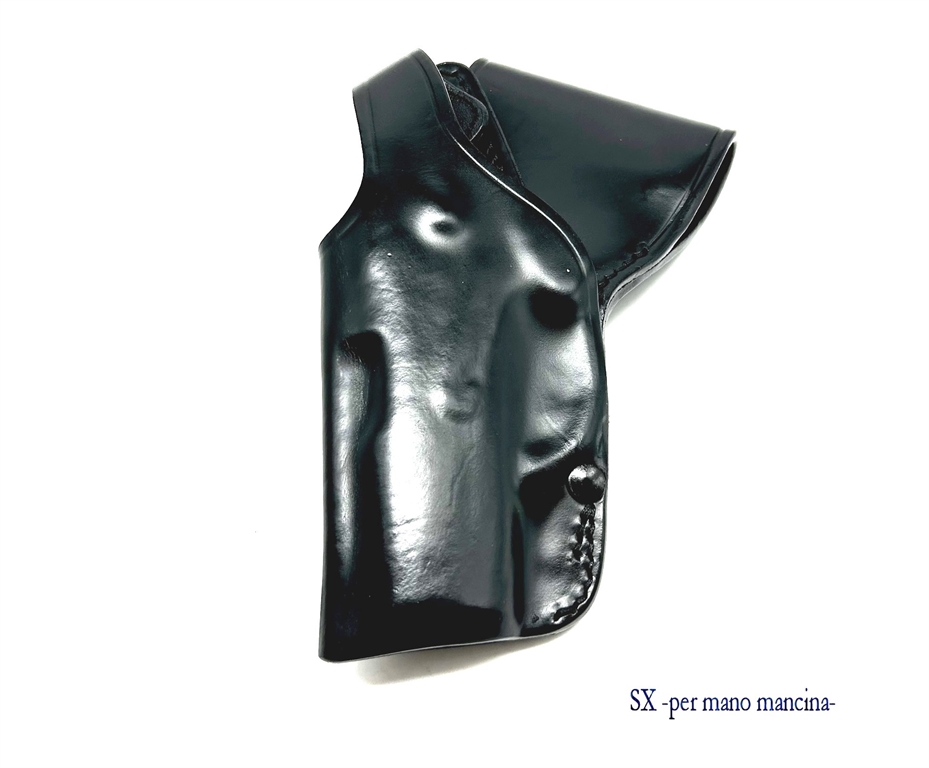 Fondina policeman con anima in acciaio interna, sgancio rapido, canale di scorrimento mirino-canna. Sformata in cuoio ingrassato nero o bianco. Prodotta per le seguenti armi: beretta apx, beretta 90two, 98a1, px4 storm, 92, 96, 98, 8000, 81, 82, 84, 85, colt 1911, revolver 2,5, 4 e 6 pollici, glock 17, 19, 22, 23, walther p99. Altezza ideale della cintura per poter essere adattata al meglio la fondina e di 5 cm. Prodotto in Italia. Peso lordo: 245 grammi.