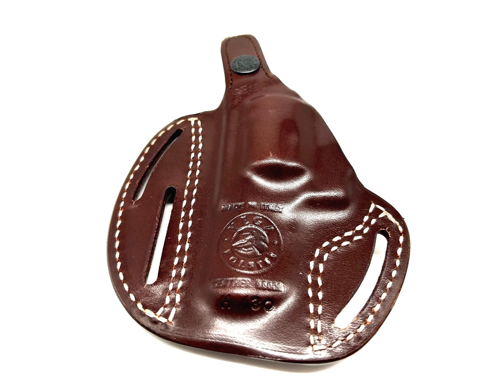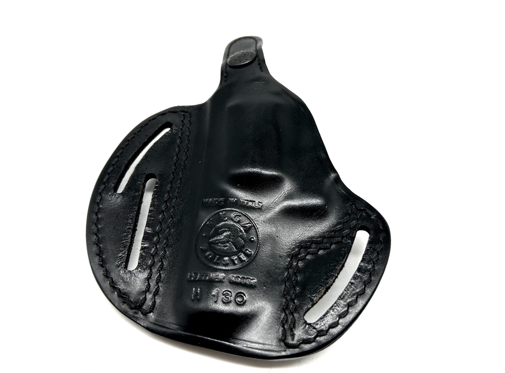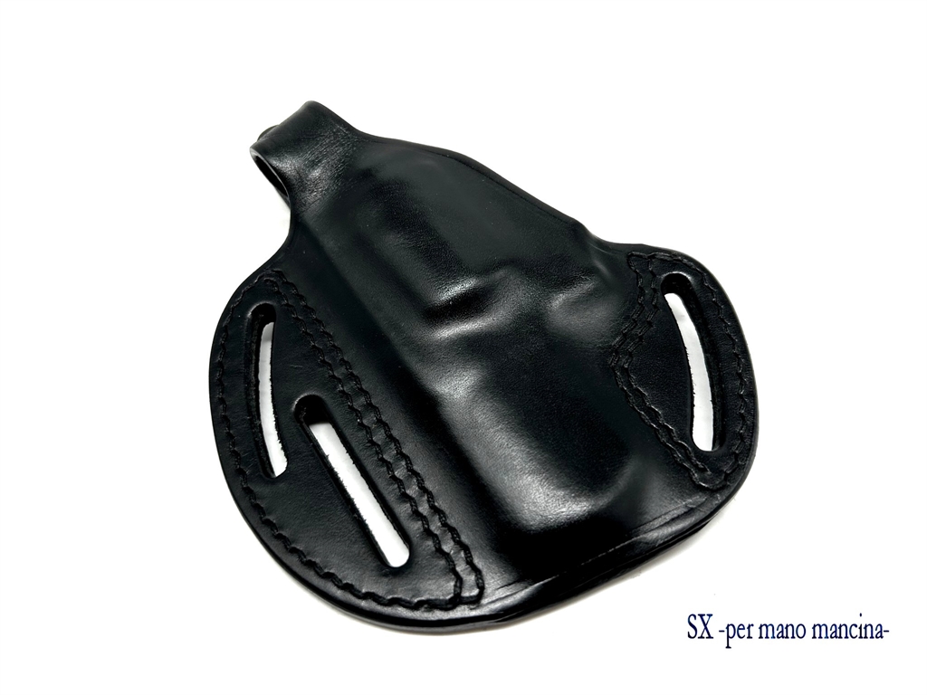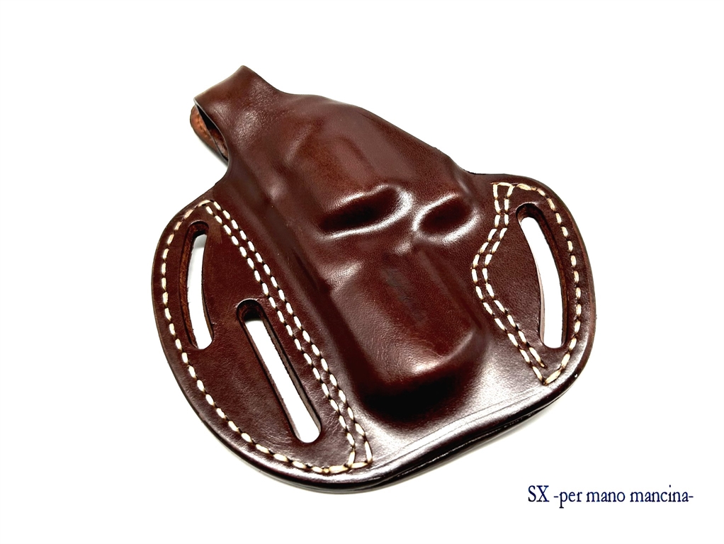 Fondina da cintura in cuoio con sgancio rapido e 3 asole che consentono una diversa inclinazione. Prodotta nei colori nero o marrone e per vari tipi di pistole e revolver come: beretta 92, 98, 84, 8000, px4 storm, 90 two, 98 A1, beretta apx, bersa thunder 9, glock 17, 19, 20, 21, 22, 31, 37, 43, caracal c, caracal f, colt 1911, hk usp, hk usp compact, spriengfield xd, walther ppk, ppq, p99, p99q, revolver da 2, 3 e 4 pollici e altri modelli. Altezza ideale della cintura per poter essere adattata al meglio la fondina e di 4 cm. Peso lordo: 90 grammi .Prodotto in Italia.