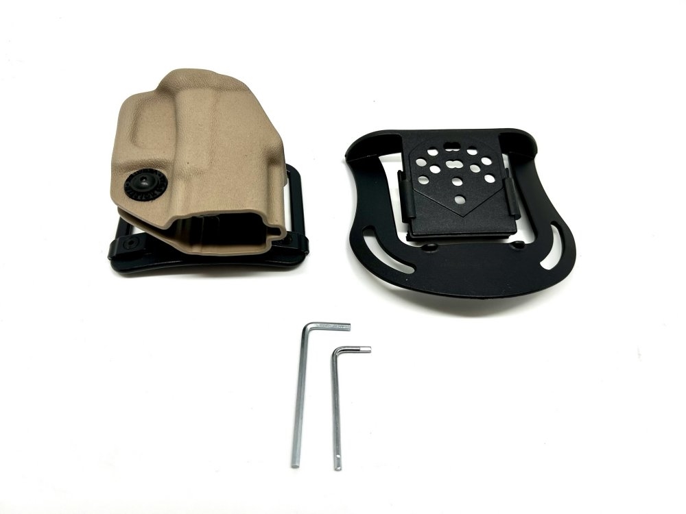 Fondina in polimero a spessore maggiorato. Vite di ritenzione che agisce sul ponticello e sulla canna. Doppio sistema di passante incluso: a) paddle con inclinazioni ed altezza regolabile. b) passante asole con inclinazione ed altezza regolabile. Prodotta per le seguenti armi: beretta 92, 98, px4 storm, colt 1911 e similari, cz sp01 shadow, cz sp02 shadow 2, glock 17, 19, 22, 23, sig sauer 2022, h&k us compact, walter p99q e ppq. Le asole del passante sono per cinturoni alti da 4 a 5 cm. Prodotto in Italia. Peso lordo: 170 grammi.