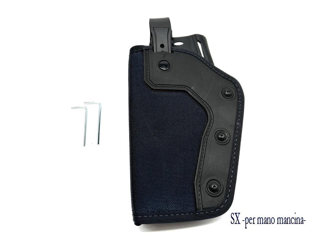 Fondina in Cordura da fianco, sistema di sgancio rapido con sicura Vega Stop Snap regolabile ed amovibile. Supporto in Polimero che mantiene la giusta distanza dal corpo. Fondina disponibile solo in colore Blu e per armi Beretta 92Fs e 98 Fs. Le asole del passante sono per cinturoni alti 5 cm. Peso lordo: 330 grammi. Prodotto in Italia.