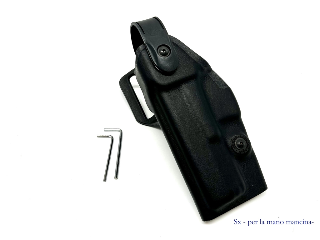 Fondina in speciale polimero rivestita internamente in pelle tecnica. Sistema di sicurezza superiore con facilita di estrazione. Vite di ritenzione sulla canna. Possibilita di montaggio su tutti i passanti vega holster. Prodotta per i seguenti modelli: beretta 92, 98, 98A1, 90two, px4 storm, caracal c, caracal f, colt 1911 ,colt pyton 4 pollici, glock 17, 18, 19, 23, 25, 267, 27, 28, 32, 38, hk usp, sig sauer p 220, 226, pro 2022, taurus pt92, walther ppq, p99q, p99, piexon jpx. Disponibile in colore nero, bianco solo su ordinazione. Passante in polimero. Le asole del passante sono per cinturoni alti 5 cm. Prodotto in Italia. Peso lordo: 325 grammi.