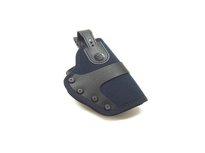 Fondina con sistema di sgancio rapido con sicura regolabile ed amovibile. Supporto in polimero che mantiene la giusta distanza dal corpo. Colori disponibili: nero, blu. Prodotta per le seguenti armi: beretta apx, beretta 92, 98, 84, px4 storm, px4 storm sub compact, 90 two, 98 A1, 8000, cz 75, 85, 83, glock 17, 19, 20, walther p99, ppq, p99q, revolver 4 pollici, taurus g3. Le asole del passante sono per cinturoni alti 5 cm. Peso lordo: 265 grammi. Prodotto in Italia.
