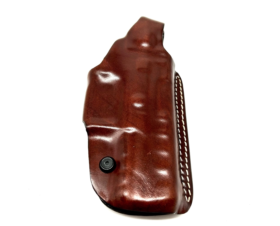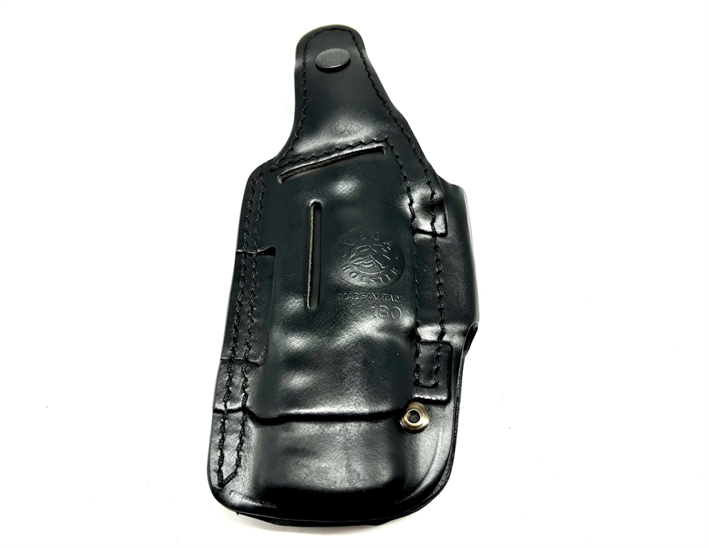 Fondina da cintura bi uso: dietro schiena orizzontale o verticale con la canna rivolta verso il basso. Fondina in cuoio ingrassato marrone o nero. Prodotta per: beretta 92, 98, 98A1,apx, px4 storm, 81, 84, 8000, 9000, caracal f, caracal c, cz75, glock 17, 19, 20, 21, 22, 23, 25, 26, 27, 29, 30, 36, 42, sig sauer pro 2022, hk usp compact, taurus g3, walter ppk, pps, ppq, p99q, p99. Le asole del passante sono per cinture alte 4 cm. Peso lordo: 135 grammi. Prodotto in Italia.