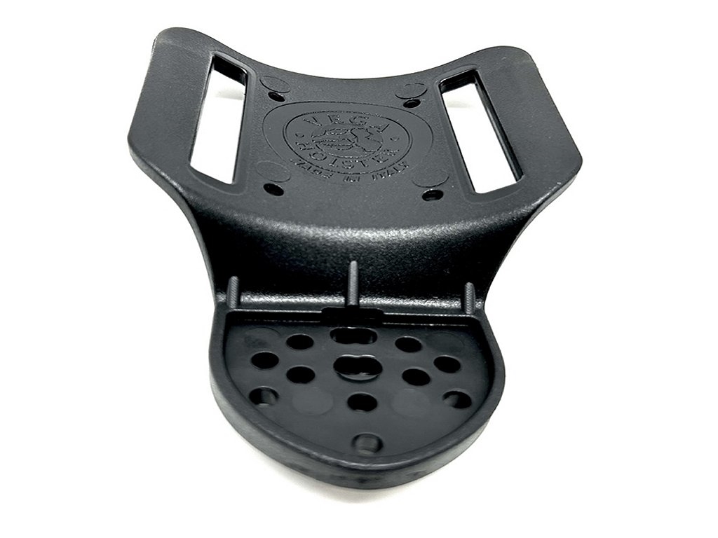 Doppia asola per il passaggio di cinturoni con altezza fino a 6 cm. Multifori per doppia posizione in altezza ed inclinazione tramite viti. Colori: nero e bianco. Peso lordo: 71 grammi. Prodotto in Italia.