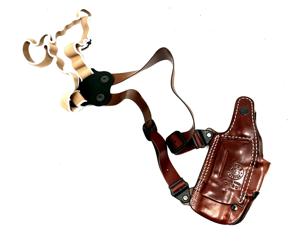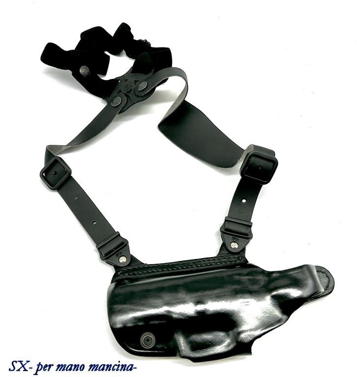 Fondina in cuoio ascellare o da cintura con sgancio rapido. 4 usi: ascellare orizzontale, a cintura sul fianco destro, cross draw e retro schiena. Prodotta per: beretta 92, 98, 84, 9000, beretta apx, px4 storm, 90 two, 98 A1, colt 1911, caracal c, caracal f, glock 17, 19, 20, 22, 23, 26, 27, 30,42 revolver da 2 pollici fino a 4 pollici, sig sauer p226, 228, 229, 230, 232, 2340, pro 2022, hk usp, spriengfield xd, walther p99, ppk, pps. In colore marrone o nero. Peso lordo: 240 grammi. Prodotto in Italia.