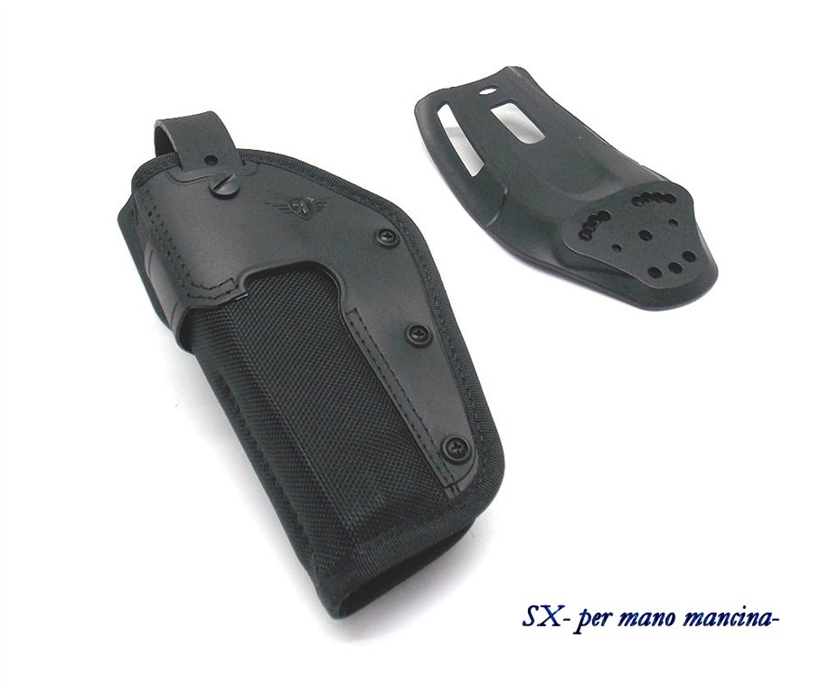 E' una fondina professionale di servizio e tattica, ideale per il porto da cintura in posizione medio bassa con passante girevole in tecnopolimero. Le asole del passante sono per cinturoni alti 5 cm. In dotazione c'è anche un altro passante fisso in polimero. Colore nero. Disponibile sia destra che sinistra. E' adatta per Beretta 92, 92S, 98 FS, 96, Colt Government 1911. Peso lordo: 430 grammi. Prodotto in Italia.