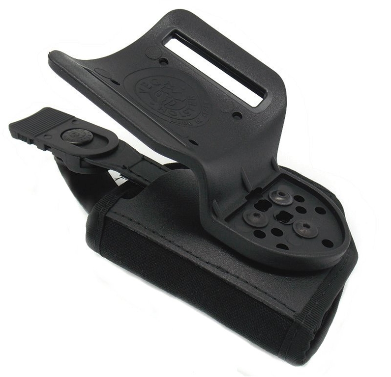 Fondina con sistema di sgancio rapido con sicura regolabile ed amovibile. Supporto in polimero che mantiene la giusta distanza dal corpo. Colori disponibili: nero, blu. Prodotta per le seguenti armi: beretta apx, beretta 92, 98, 84, px4 storm, px4 storm sub compact, 90 two, 98 A1, 8000, cz 75, 85, 83, glock 17, 19, 20, walther p99, ppq, p99q, revolver 4 pollici, taurus g3. Le asole del passante sono per cinturoni alti 5 cm. Prodotto in Italia.