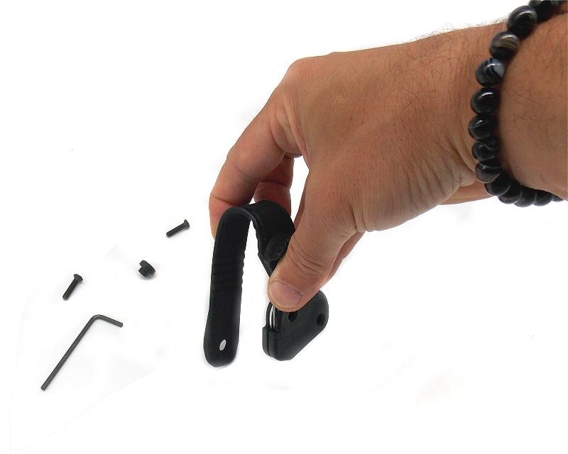 Laccino di ricambio, in polimero, completo di scatolina e viti per fondine Polizia Penitenziaria. Colore nero. Prodotto in Italia. Peso lordo: 70 grammi.