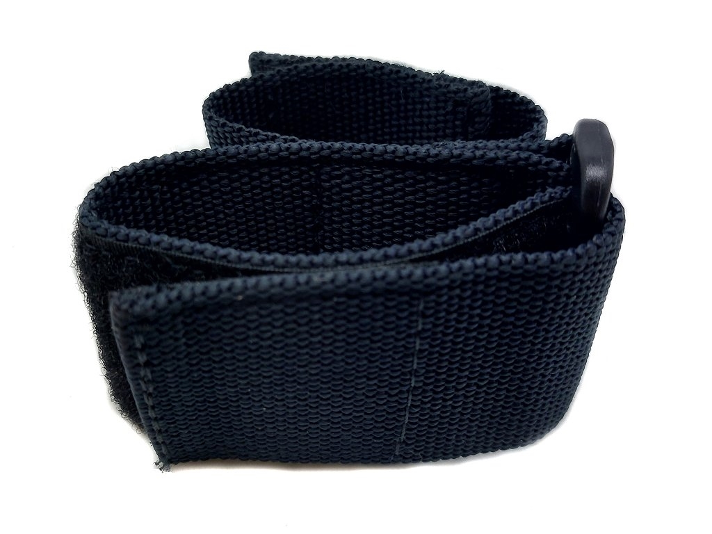 Porta guanti orizzontale in cordura nera o blu scuro. Regolabile con il velcro. Uso orizzontale. Larghezza 4 cm. Peso lordo: 25 grammi. Prodotto in Italia.