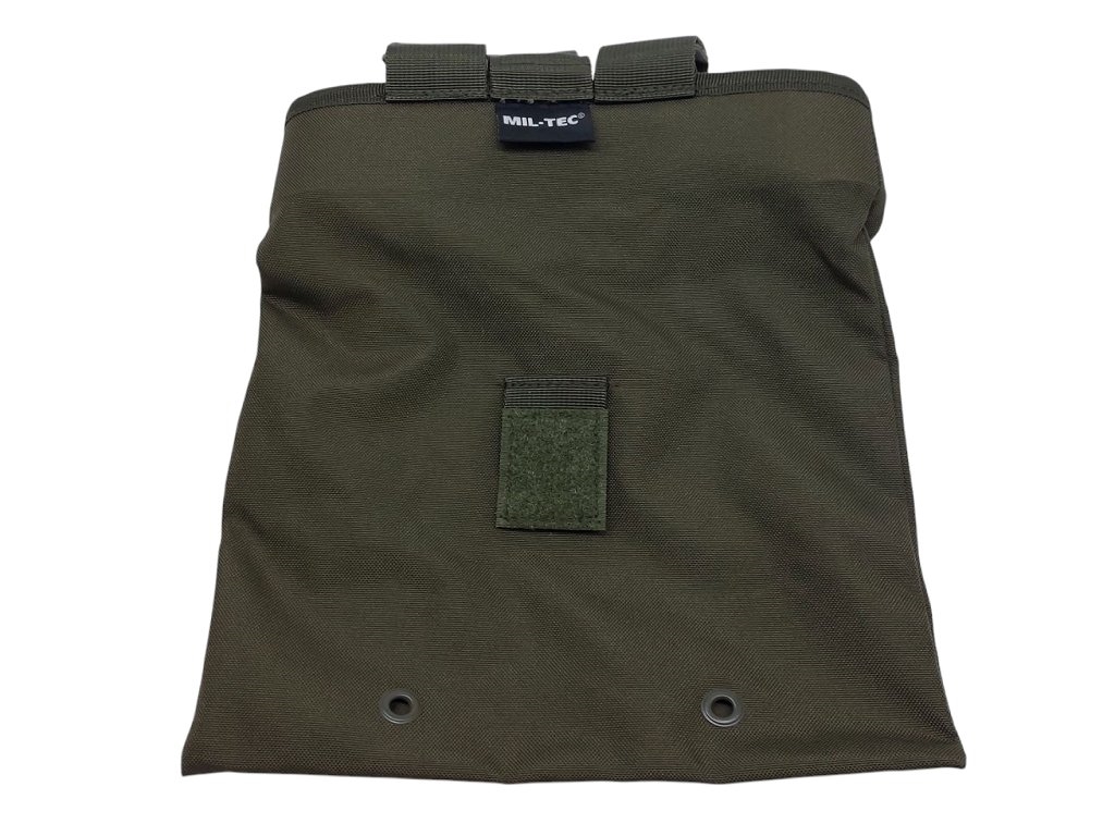 Tasca in nylon verde per caricatori, con passanti cintura con bottoni apribili e velcro. Misura: 25x28 cm. Peso lordo: 135 grammi.