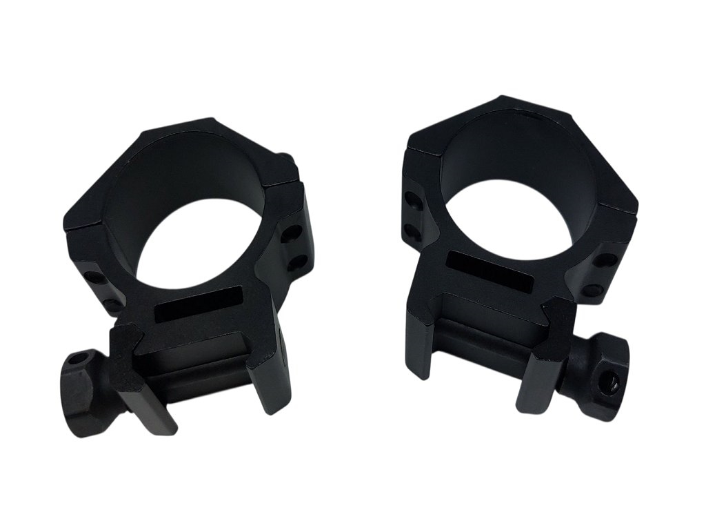 Anelli in alluminio diametro 30 mm. 4 viti di fissaggio per anello. Distanza tra base inferiore attacco e centro anello: 3 cm. Peso lordo: 140 grammi
