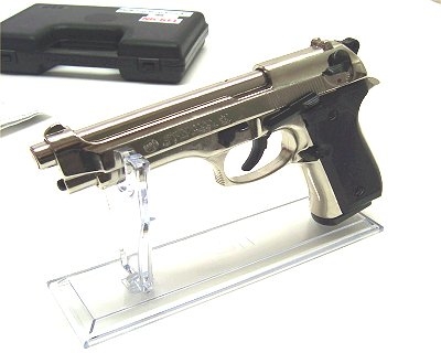 Strumento dissuasore a segnalazione acustica riproducente pistola in lega di zinco inox , peso 1100 g, lunghezza 22 cm da punta canna a punta calcio in linea retta, altezza massima 14 cm. 11 colpi dotata di valigetta in plastica, di scovolo per pulizia e di manuale. Modello top firing di libera vendita in Italia,destinata esclusivamente a uso scenico,da segnalazione o collezionistico,età consigliata per acquisto 18+ . Questa arma a salve è stata testata dal banco nazionale di prova italiano che ha apposto i suoi punzoni sul fusto, per conformità e regolare funzionamento. Funziona con cartucce calibro 8 mm a salve. Prodotto in Italia. Peso lordo: 1413 grammi.