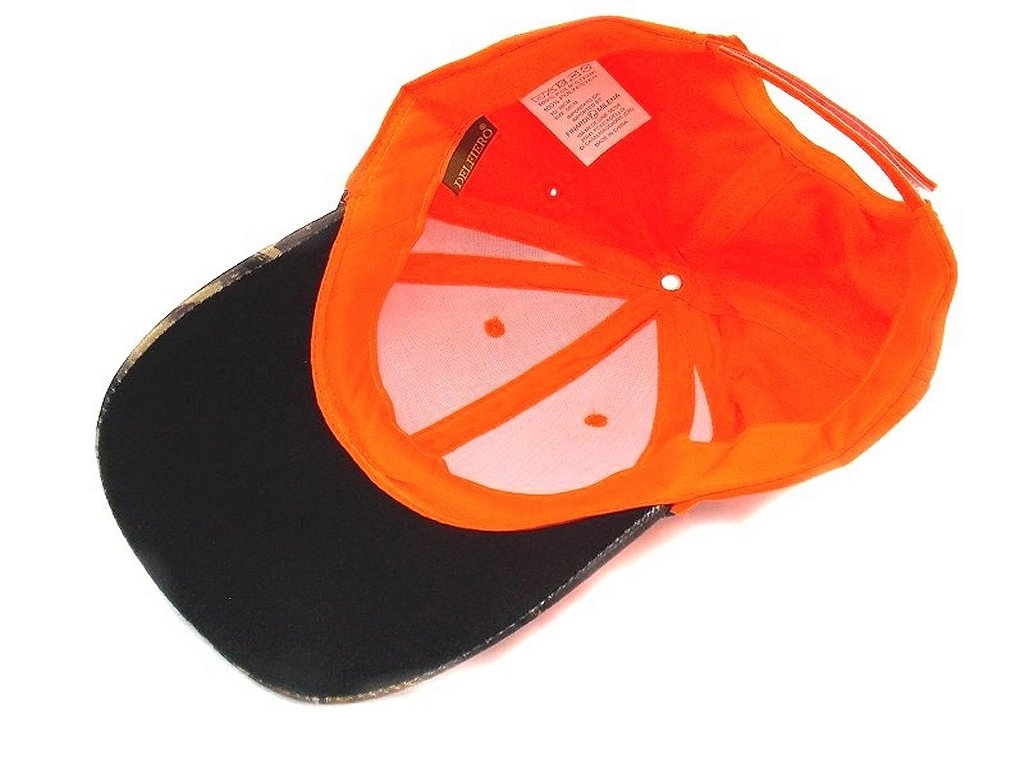 Berretto, modello baseball, in poliestere con 6 piccoli fori per una maggiore traspirabilità. Taglia unica regolabile tramite velcro. Colore arancione con riporti in colore foresta. Peso lordo: 65 grammi