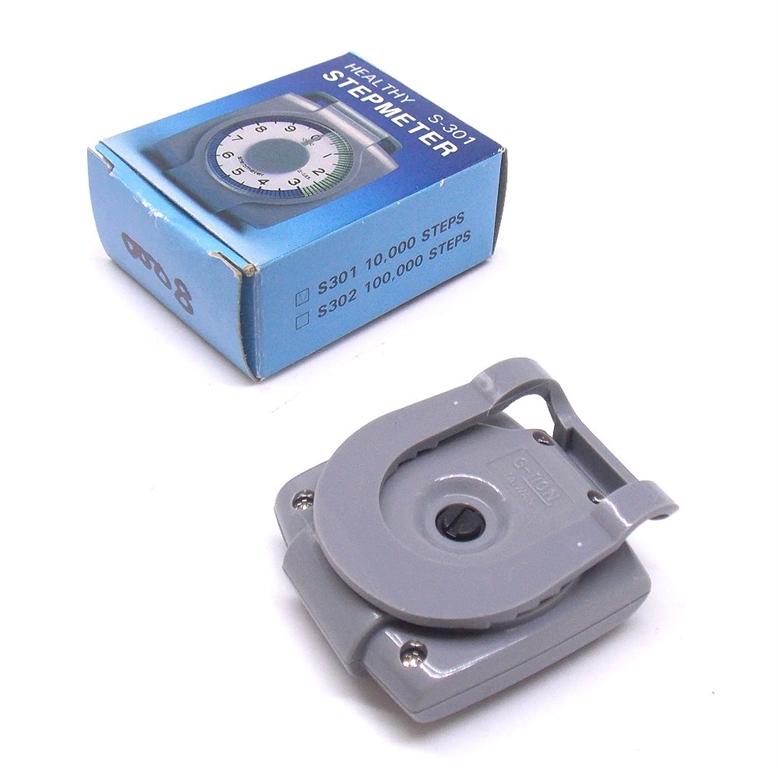 Pedometro manuale in plastica. Conta fino a 10.0000 passi. Dotato di molla per attaccarlo alla cintura. Dimensioni:6x4,5x2,5 cm. Prodotto in Tawan. Peso lordo: 31 grammi.