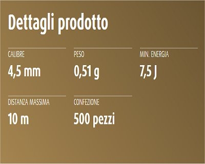 Pallini in piombo a punta piatta con imbuto liscio imballaggio in astuccio metallico, per carabina calibro 4,5 mm (peso pallino: 0,51 grammi), confezione da 500 pezzi. Peso lordo: 275 grammi. Prodotto fatto in Germania.