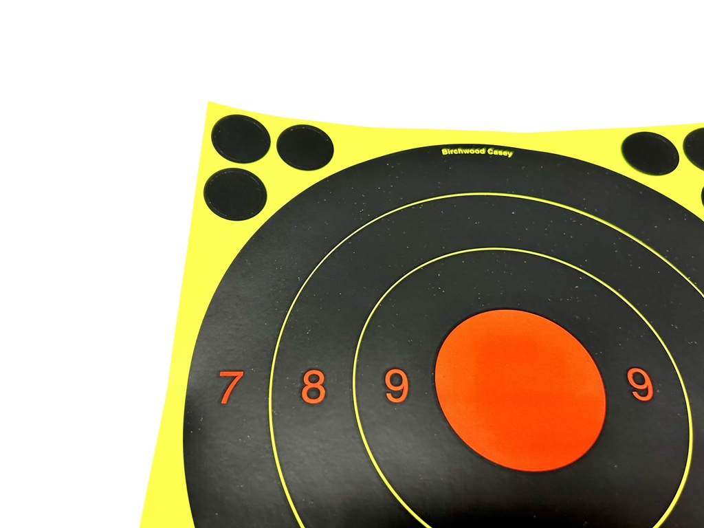 Bersaglio reattivo in carta adesiva per tiro con carabine aria compressa. Diametro 20 cm. Dotato di adesivi per riparare il bersaglio nella parte colpita che per reazione all'impatto con il piombino si è colorato di giallo. Prodotto in Usa. Peso lordo: 1 grammo.