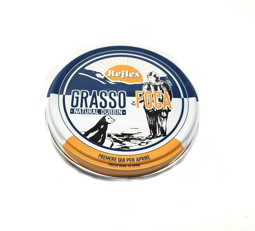 Grasso naturale tradizionale per calzature moderne in cuoio opaco, sportive, da montagna, caccia e pesca. Grasso foca è un marchio, non viene utilizzato alcun componente proveniente da foche o altri animali protetti. Confezione da 100 ml. Peso lordo: 130 grammi. Prodotto in Italia.