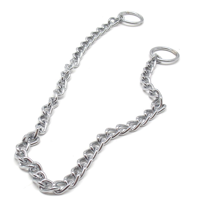 Collare strangolo in metallo cromato ad una maglia lunghezza totale 50 cm. Peso lordo: 70 grammi. Prodotto in Italia.