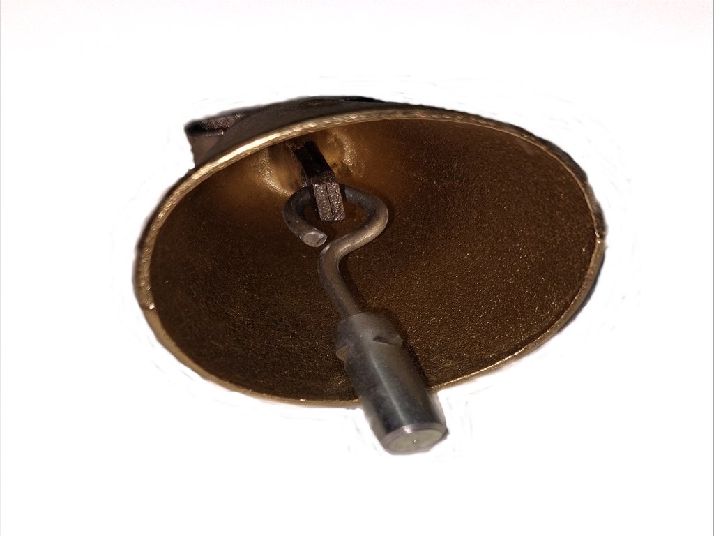 Campana di alta qualità in bronzo sabbiato esternamente con staffa in acciaio per l'inserimento del collare. Ottima sonorità acuta che dà la percezione esatta della posizione del cane. Linea che riproduce un antica campana sarda. Lunghezza totale 7,8 cm (solo campanella 5 cm), larghezza massima cm 4,4. Prodotto artigianale sardo realizzato interamente a mano. Peso lordo: 88 grammi