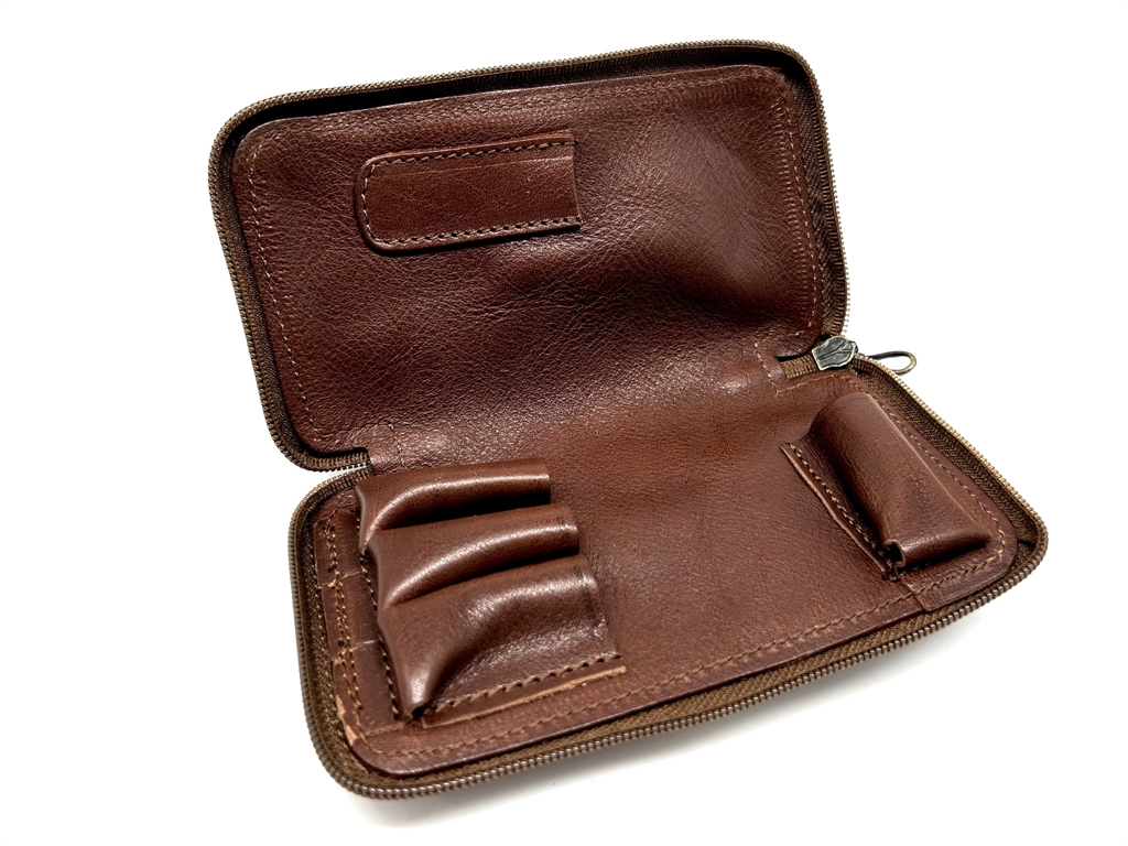 Porta strozzatori in pelle morbidissima, chiusura con cerniera e passanti per cintura altezza 5,5 cm. Dimensioni da chiuso: lunghezza 10 cm, larghezza 18 cm. Prodotto in Italia. Peso lordo: 170 grammi