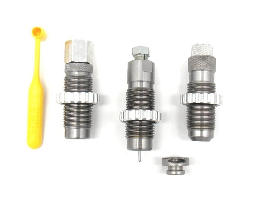 Pistol 3 die set include: misurino in platica per polvere, reggibossolo ( shell holder ), il die che ricalibra il bossolo e espelle l'innesco spento ( sizing die ), il die che svasa la bocca del bossolo per favorire l'inserimento della palla e inserisce la polvere ( expanding die ), il die che inserisce la palla e restringe le pareti del bossolo ( seating die ), la scatola in plastica e le istruzioni in inglese. Utilizzabili anche su presse di marca Dillon e Lyman. Prodotto in USA. Peso lordo: 546 grammi