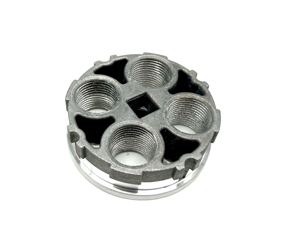 Testa portamatrici in alluminio 4 fori per pressa turret 4 stazioni, per ricambio veloce dei dies. Prodotto in USA. Peso lordo: 167 grammi