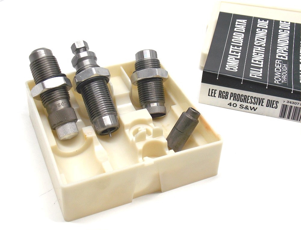 Lee RGB 40 sw 90571 die include: die per la ricalibratura del bossolo ed espulsione innesco spento, die per l'inserimento della palla e scatola di plastica. Prodotto in USA. Peso lordo: 508 grammi.