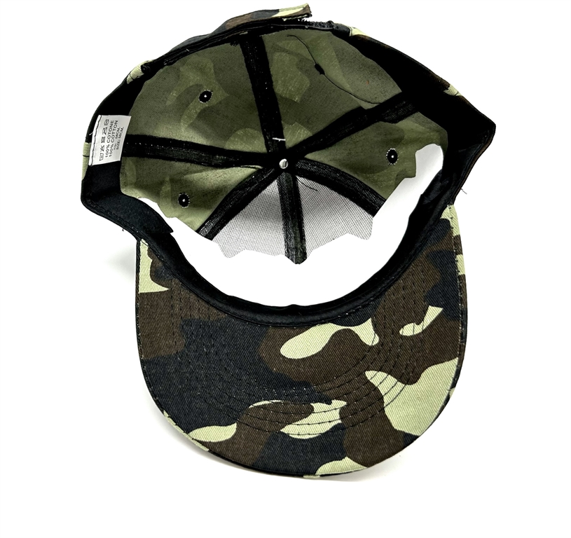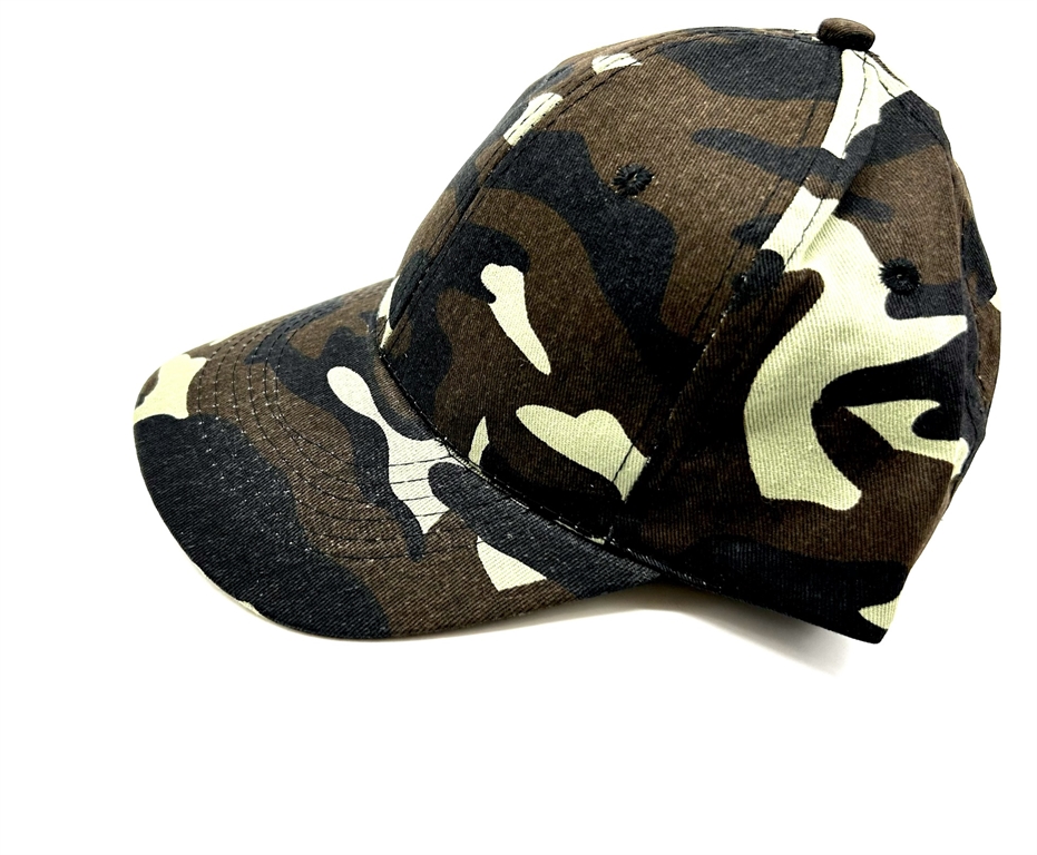 Berretto in cotone mimetico a sei spicchi con cinghietta in cotone con strip regolabile. Peso lordo: 57 grammi