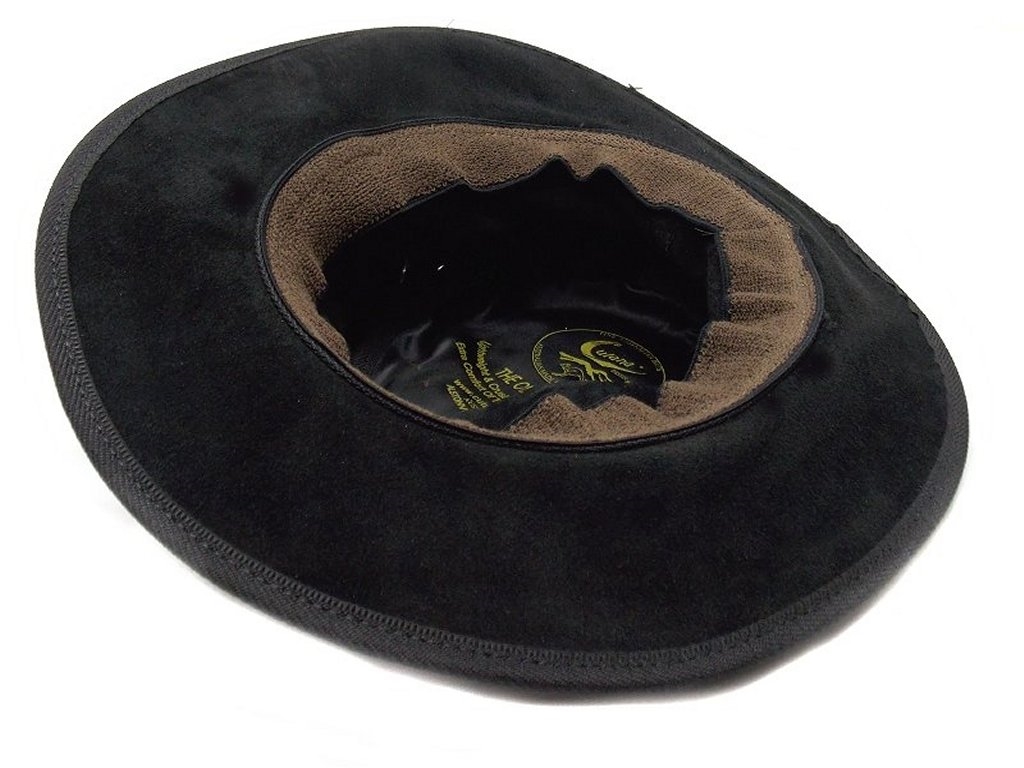 Cappello in pelle scamosciata nera resistente ai raggi ultravioletti. Con tre occhielli per parte per una maggiore traspirazione. Dotato di treccia decorativa in pelle. Misure disponibili dalla 56 alla 62. Peso lordo: 250 grammi. Prodotto originale australiano.