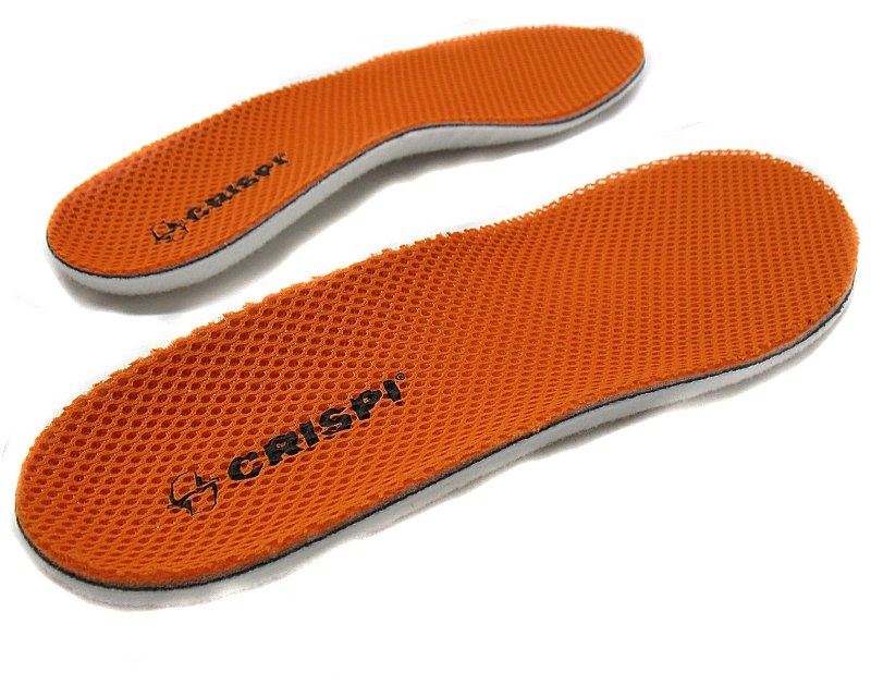 Coppia di solette colore arancione. La sua forma anatomica facilita lo sforzo sull'arco longitudinale, sul tallone e sul metatarso. Con densità differenziata. Filtro in carbone attivo con proprietà antibatteriche. Superficie in tessuto traspirante, indeformabile e resistente. Crispi air meh feltro e carboni attivi. Ottima traspirabiltà ed azione antisudore e antiodore grazie alla sua struttura che allontana l'umidità lasciando il piede asciutto in ogni momento. Sagomata sull'anatomia del piede. La forma del tallone non permette al piede di scivolare nelle camminate in discesa. Taglie disponibili: dalla 36 alla 47. Peso lordo: 105 grammi.