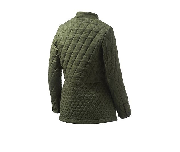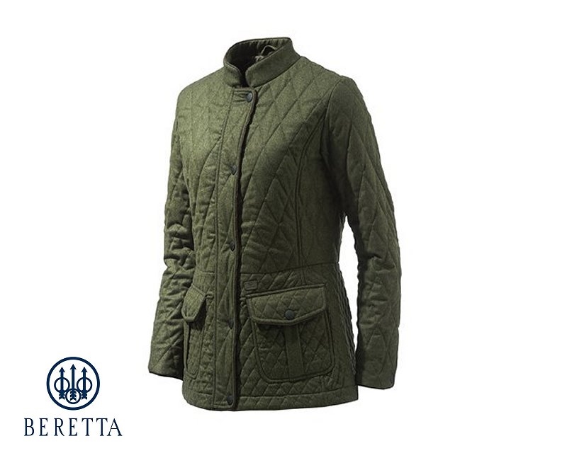 Giaccone da donna trapuntato dalla linea sagomata, realizzato in pregiata lana italiana. Con imbottitura Beretta BTP, calda e soffice che assicura un livello ottimale di calore. Chiusura con cerniera e con bottoni a pressione. Polsini con bottoni. Dotato di due tasche con bottoni. Peso lordo: 780 grammi. Misure disponibili: 42, 44, 46.