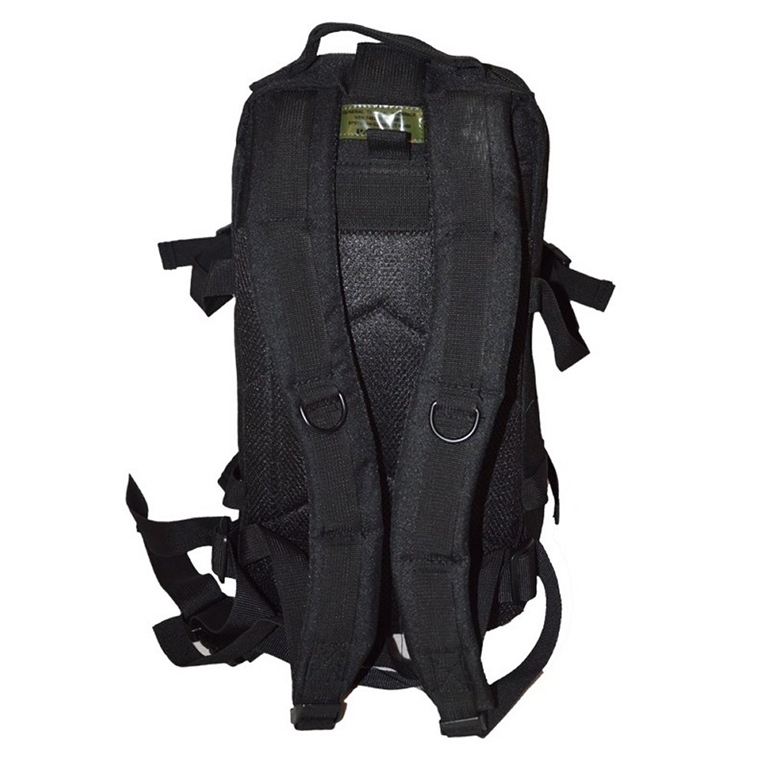 Dimensioni dello zaino tattico: 22 x 42 x 20cm (LxHxP). Capacità: 25 litri. Lo zaino militare è realizzato in tessuto di nylon di colore nero, resistente e impermeabile. Lo zaino presenta cerniere resistenti con doppia cucitura, con pratici tiranti in corda, una comoda imbottitura sulla schiena, con rete traspirante. Spallacci imbottiti e regolabili. Apertura totale con cerniera. Lo zaino è dotato di sistema Molle. Pieno di punti di montaggio all'esterno dello zaino tattico per aggiungere quanto serve, progettato per essere utilizzato in combinazione con altre attrezzature, è possibile caricare sacche, accessori e altro. Questo zaino tattico è dotato di scomparti multipli e tasche con cerniera, incluse tasca interna con cerniera e tasca in rete, consente di mettere quasi tutto il necessario all'interno. Con predisposizione per borse idratante. Peso lordo: 1000 grammi.