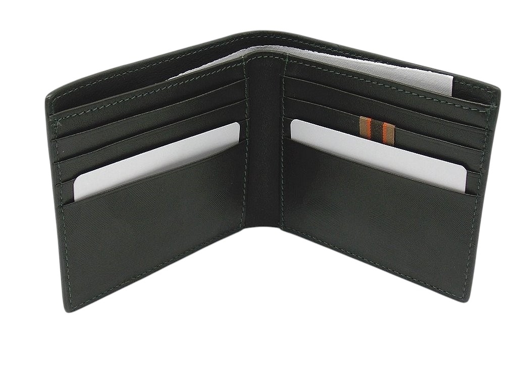 Portafoglio realizzato in 100% pelle con fodera in poliestere. Caratterizzato dal motivo camo stampato sulla pelle con una tecnica 3D. All'interno ci sono 10 scompartimenti per carte, e due scompartimenti per banconote. Colore verde. Dimensioni da chiuso: 11x9,5 cm. Prodotto in India. Peso lordo: 135 grammi.
