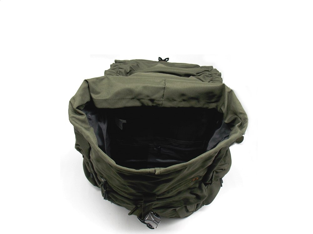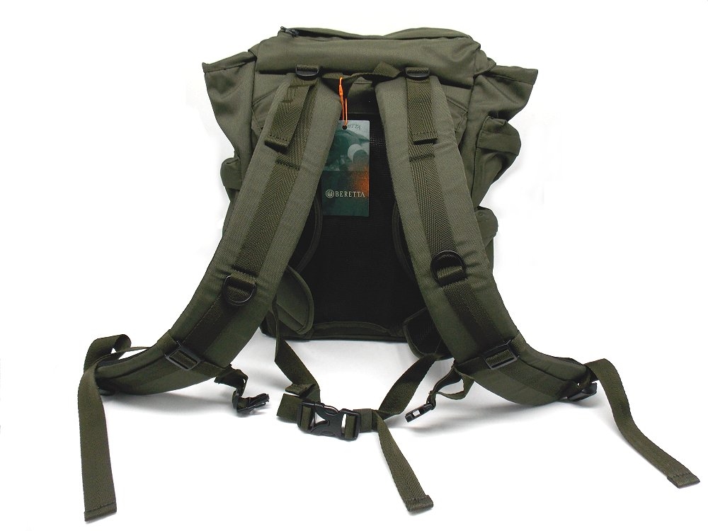Zaino da 25 litri organizzato con chiusura a patta e fibbia. Realizzato in materiale idrorepellente e resistente. Tasca superiore per accessori. 3 tasche laterali con cerniera. Schienale imbottito. Spallacci imbottiti. Cintura regolabile. Colore: verde. Dimensioni: 38x26x18 cm. Peso lordo: 945 grammi. Prodotto in Cina.