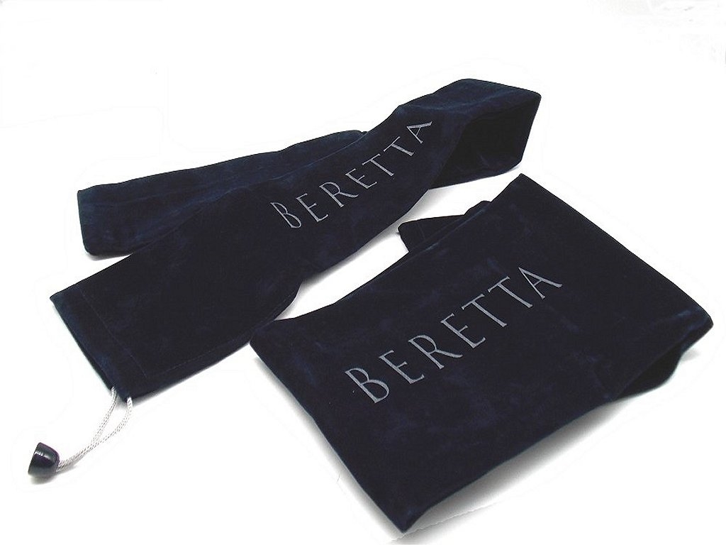 Coppia di foderine in vellutino blu. Lunghezza foderina canna 80 cm, lunghezza calcio 60 cm. Con laccetto di regolazione. Peso lordo: 130 grammi. Prodotto in Italia.