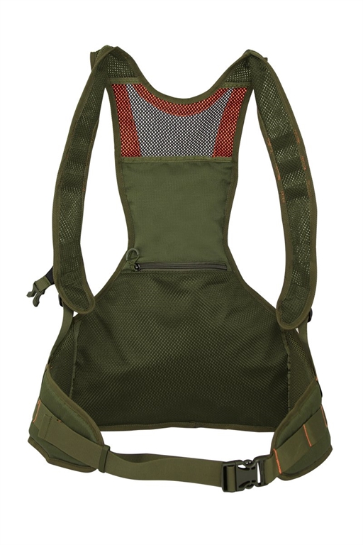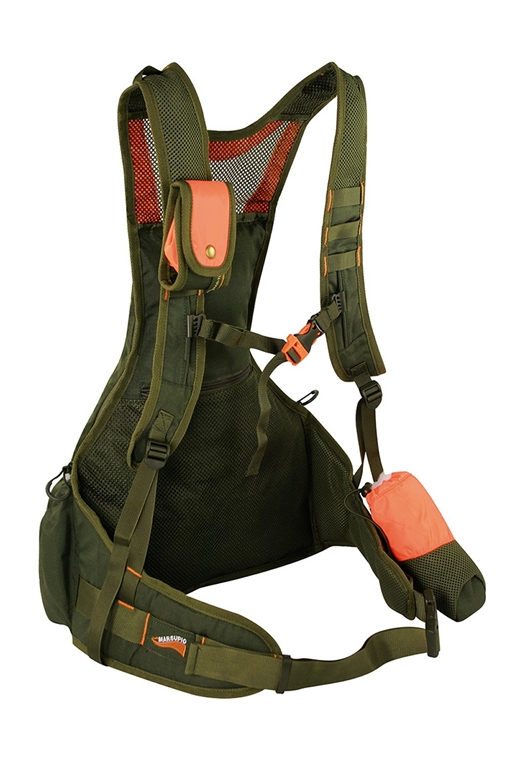 Zaino-Gilet per la caccia in tessuto Suede (microfibra), silenzioso ed impermeabile. Capacità: 15 litri. Peso: 576 grammi. Dimensioni aperto: 97x58x9 cm. Dorso in rete. Spallacci traspirante e regolabili. Cinturino pettorale scorrevole con fischietto. Cinghia vita regolabile. Cinturone a vita con cuscinetti traspiranti. Taschina porta colpi a 5 celle removibile. Porta borraccia removibile. Attacchi funzionali su spallacci, e cintura a vita. Vano capiente sul retro accessibile ambo i lati grazie a due zip. Banda ad alta visibilità estraibile. Tasca interna porta documenti. Taglia unica. Colore verde. Prodotto in Italia. Peso lordo: 655 grammi.