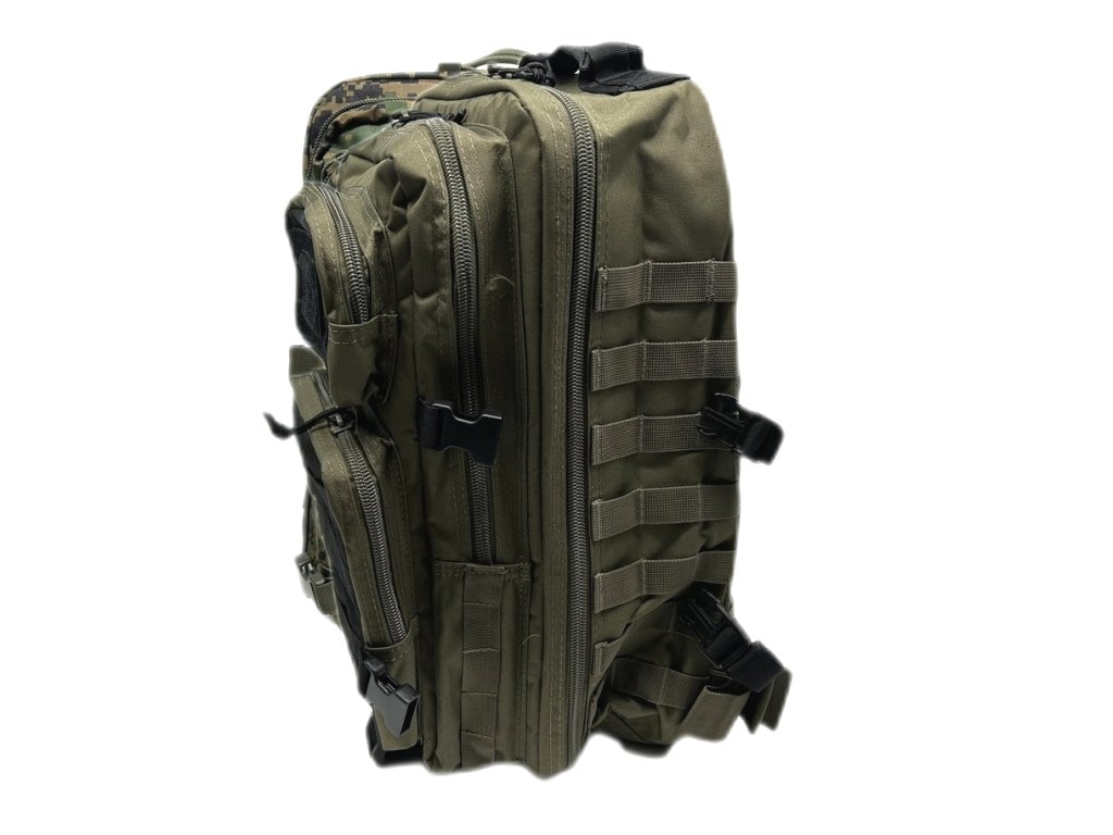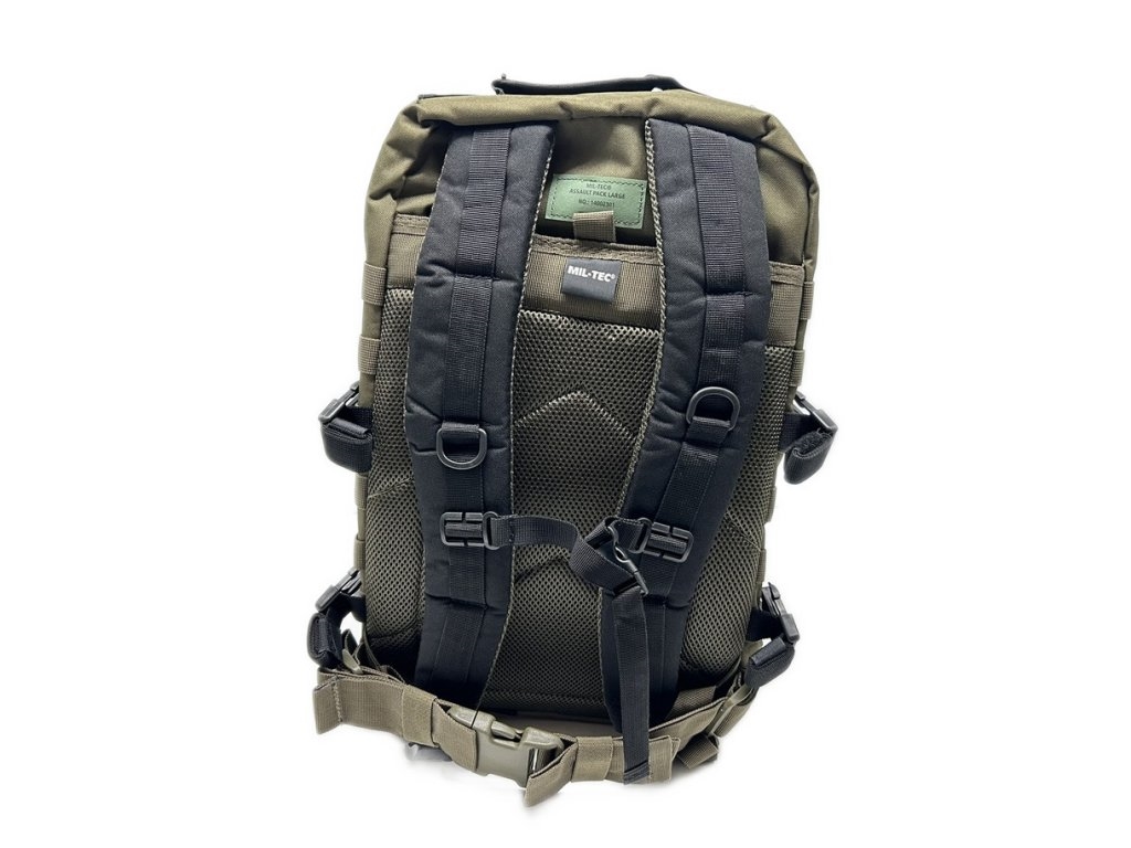 Zaino in poliestere di colore verde e nero. Dimensioni: 51x29x28 cm. Peso: 1450 grammi. Capacità: 36 litri. Chiusura con cerniera. Dotato di 2 compartimenti separati e 2 tasche frontali. All'interno ci sono varie tasche. Sul retro c'è un'ampia tasca con chiusura a velcro, ideale per sacche di idratazione. Vari punti di fissaggio molle. Spallacci imbottiti e regolabili. Anelli sugli spallacci. Cinghia sul ventre regolabile con chiusura a sgancio rapido. Maniglia di trasporto. Con cinghie di compressione laterali. Prodotto in Germania. Peso lordo: 1315 grammi.
