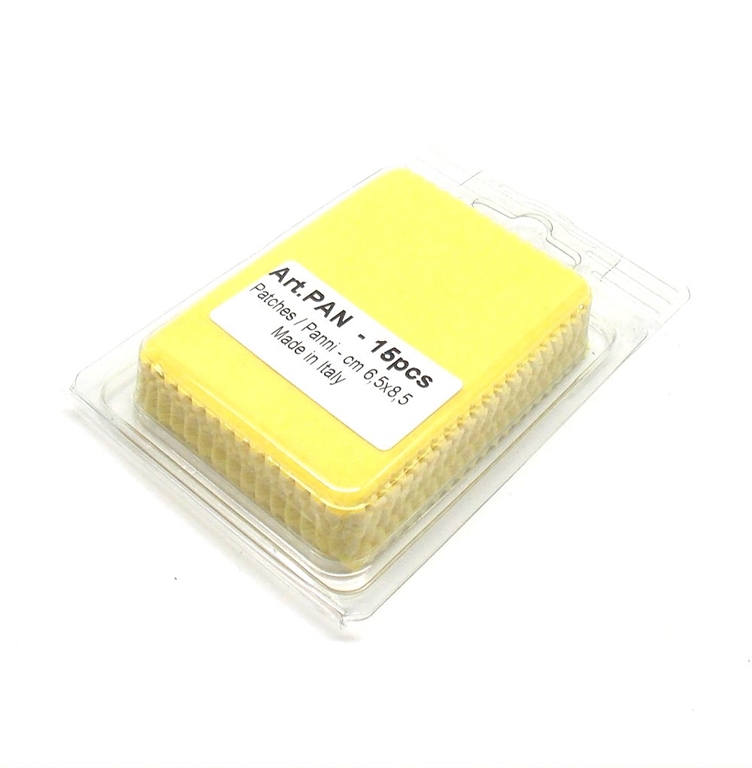 Pannetti gialli per la pulizia di armi. Misura: 6,5x8,5 cm. Confezione da 15 pezzi. Peso lordo: 25 grammi. Prodotto in Italia.
