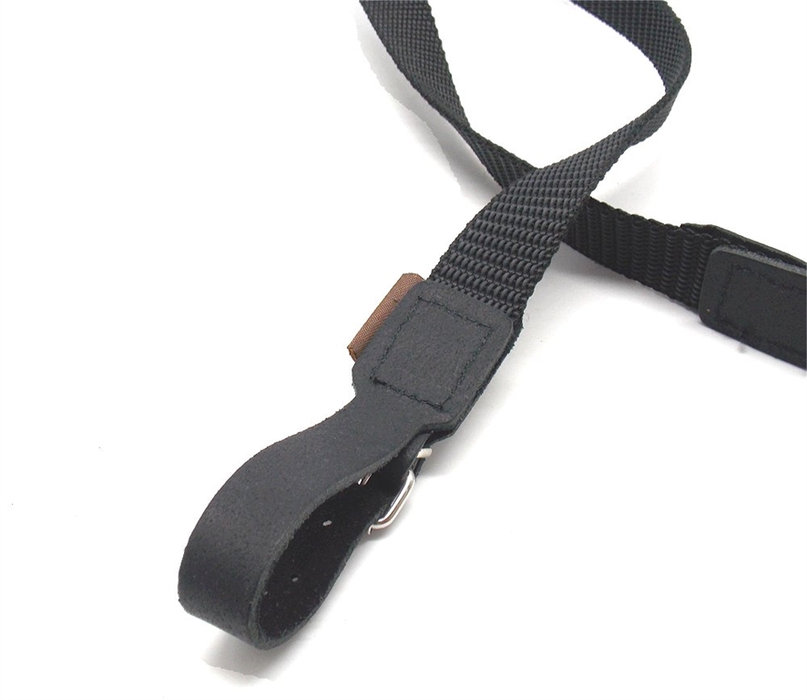 Bretella porta fucile in tela con antiscivolo incorporato e attacchi in cuoio. Dimensioni: larghezza 3 cm, lunghezza totale 89 cm. Colore nero. Peso lordo: 75 grammi. Prodotto in Italia.