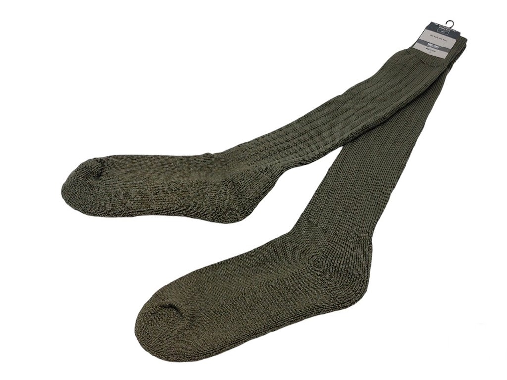 Calze di colore Oliva per esercito, 70% lana, 30% poliammide. Assorbimento del sudore con imbottitura su tallone, punta e plantare per evitare vesciche e sfregamenti. La cucitura piatta sulle dita e il supporto elastico per l'arco plantare proteggono dall'abrasione del filo e dalle irritazioni causate dalle tradizionali cuciture sulle dita. Misure disponibili: 2 (39-41), 3 (42-43), 4 (44-45), 5 (46-48). Made in Germany. Peso lordo: 150 grammi.