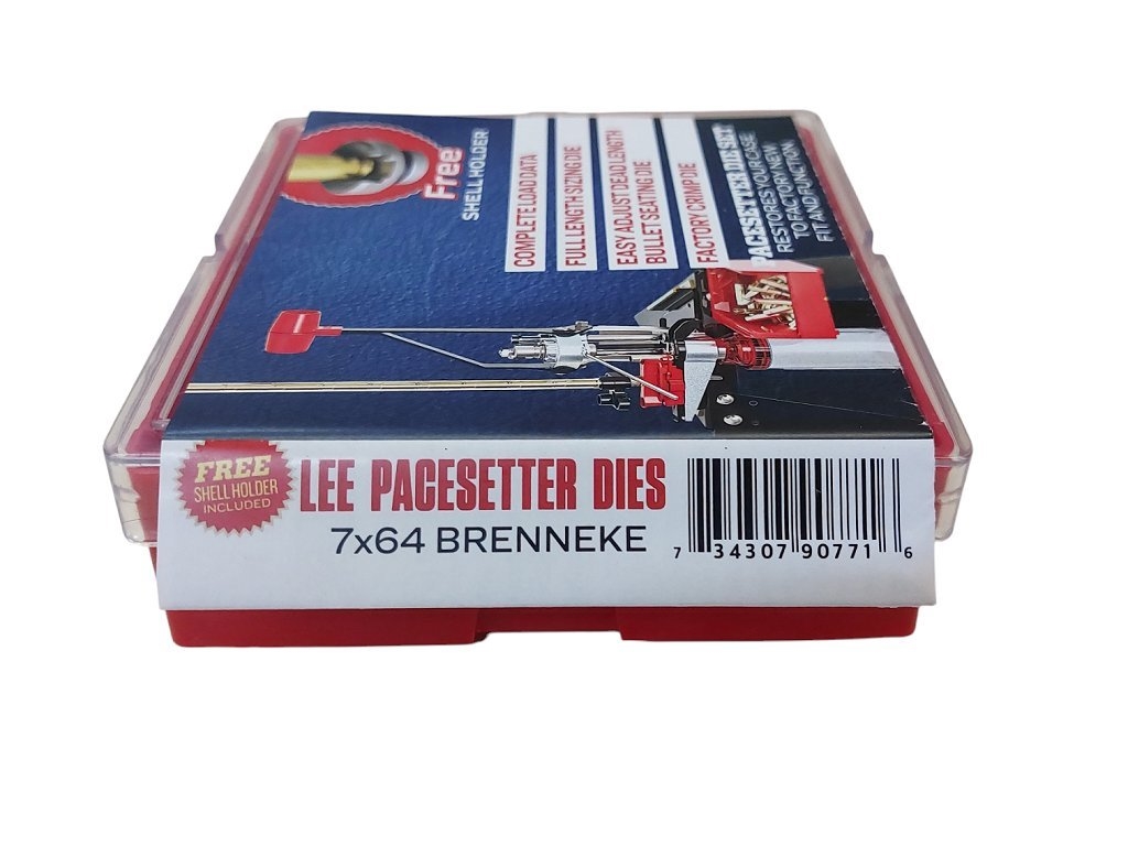 Lee 7X64 pacesetter 3 die set include: misurino in plastica per polvere, reggibossolo ( shell holder ), il die che ricalibra il bossolo e espelle l'innesco spento ( sizing die ), il die che inserisce la palla e restringe le pareti del bossolo ( seating die ), il die che rettifica le munizioni ottenute eliminando eventuali sovradimensionamenti dovuti al diametro abbondante della palla ( factory crimp die ), la scatola in plastica e le istruzioni in inglese. Utilizzabili anche su presse di marca Dillon e Lyman. Prodotto in USA. Peso lordo: 543 grammi.